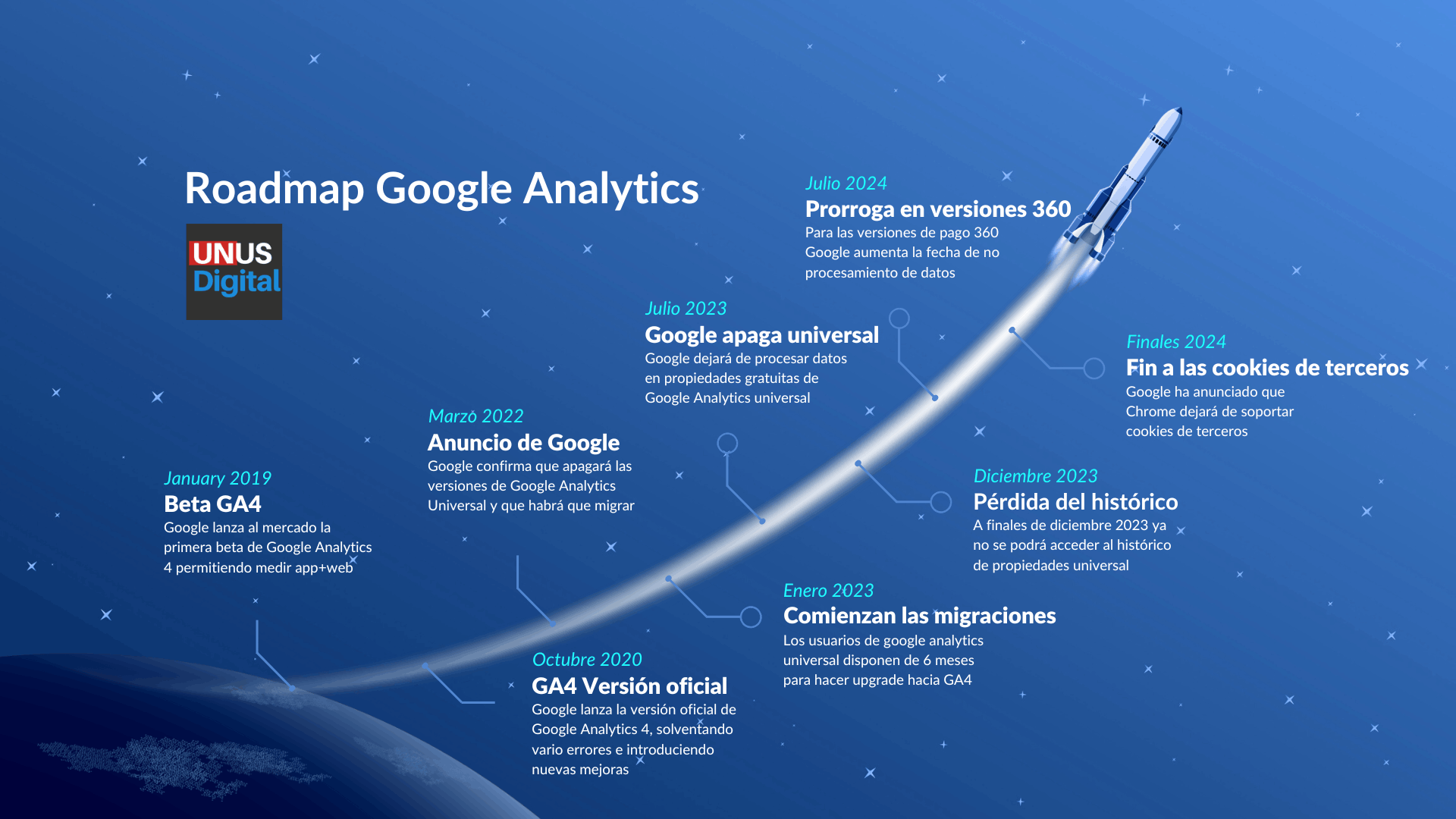 Cómo ya sabrás, Google Analytics Universal dejará de procesar datos en sus propiedades gratuitas el día 1 de Julio de 2023. En UNUS hemos lanzado un servicio ágil y económico para que tu empresa migre Google Analytics a la nueva versión.